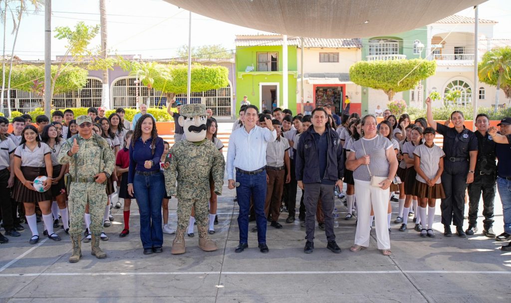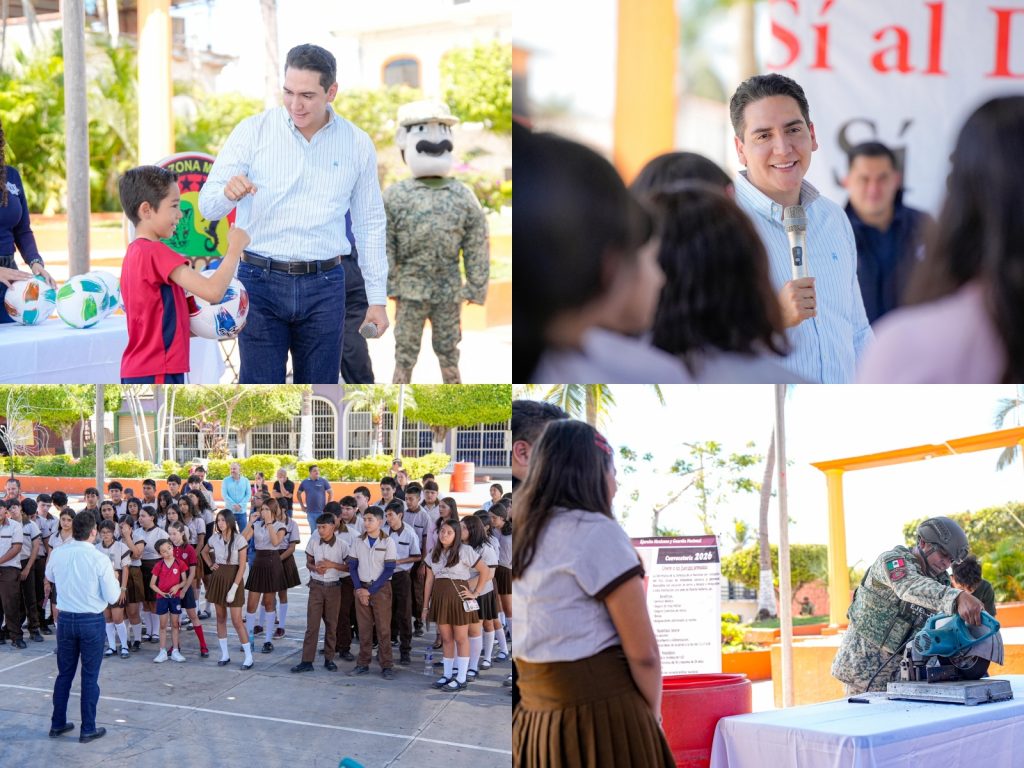 Como parte de la actividad, también se promovió la participación de estudiantes de nivel básico y medio superior, a quienes se les invitó a replicar el mensaje de prevención en sus hogares. Asimismo, se realizó una dinámica de concientización en la que niñas y niños intercambiaron juguetes bélicos por balones, fomentando alternativas recreativas y deportivas.