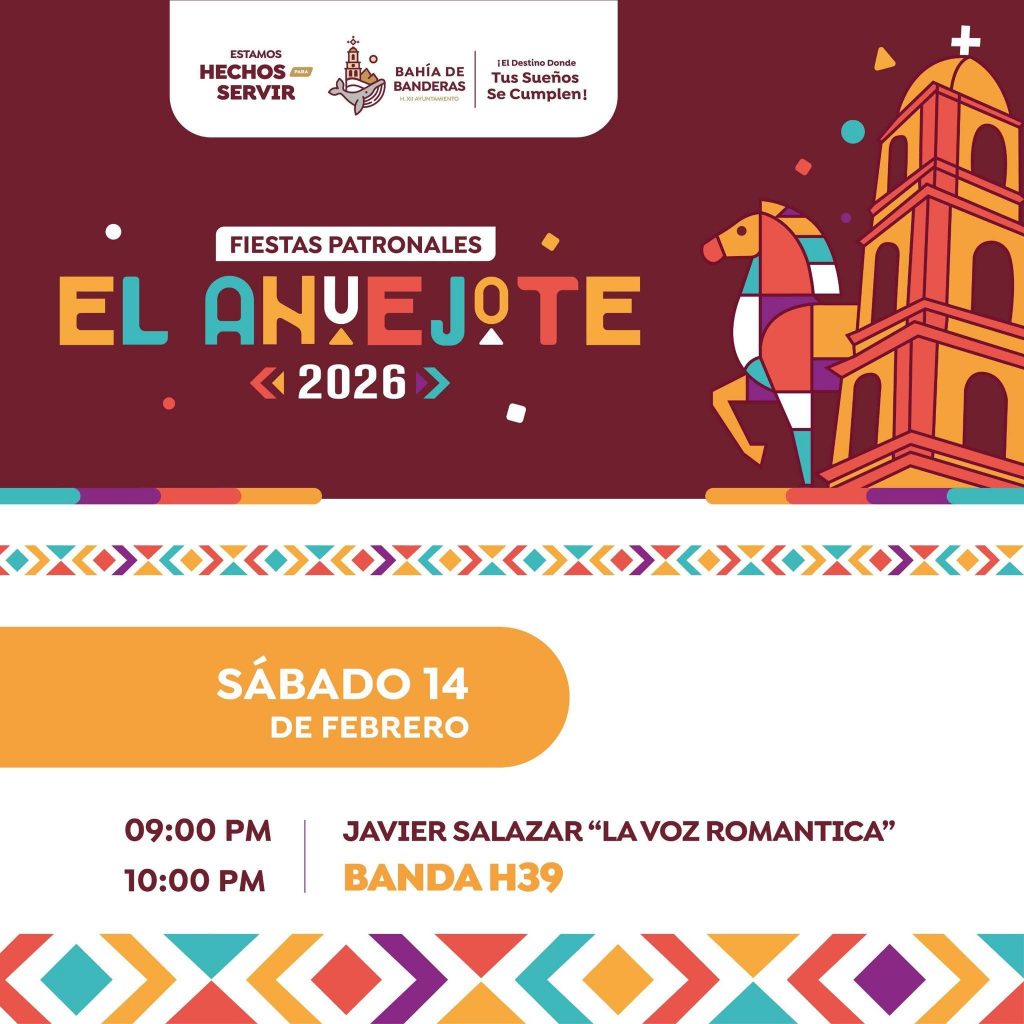 Este próximo 14 de febrero, el municipio de Bahía de Banderas vivirá una noche especial con la celebración de las Fiestas Patronales “El Ahuejote” 2026, una tradición que reúne a familias y visitantes en un ambiente de alegría, cultura y convivencia.