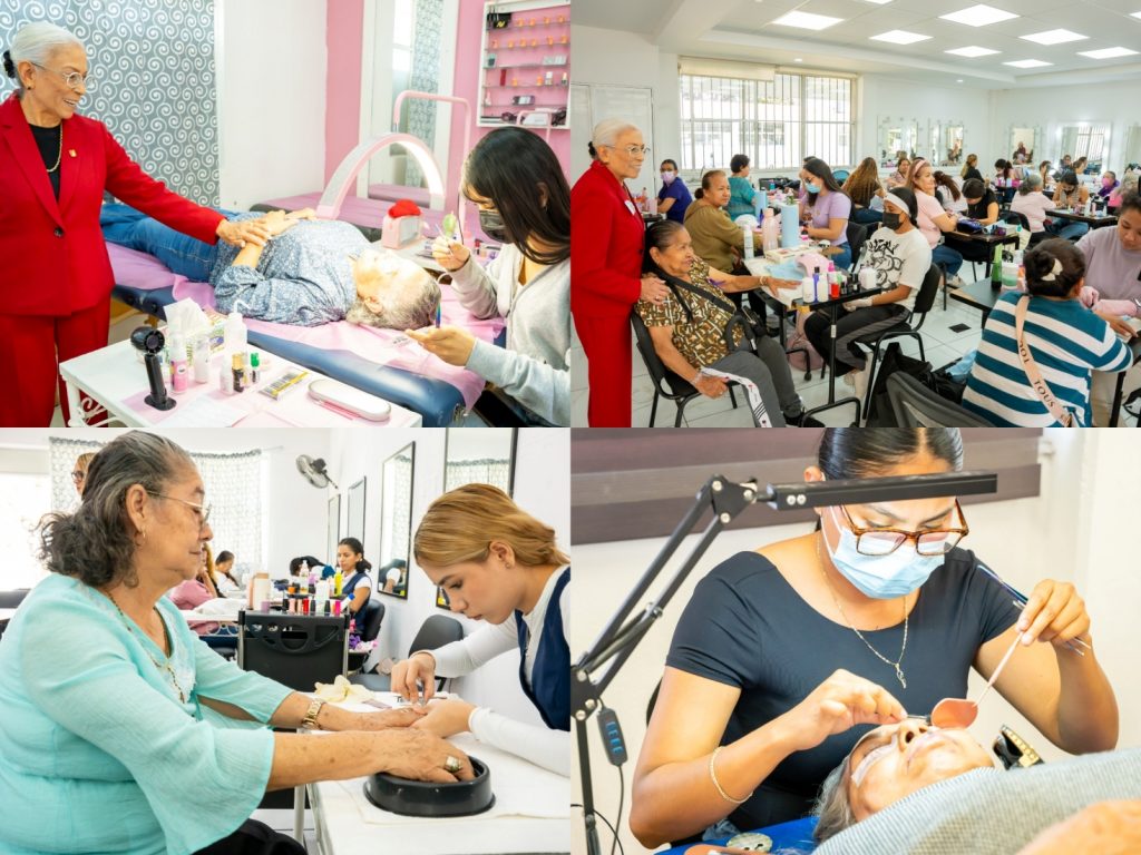 En el marco del Día Internacional de la Mujer, la presidenta del Sistema DIF Nayarit, doctora Beatriz Estrada Martínez, dedicó un día de spa a mujeres adultas mayores, quienes disfrutaron de masajes, cortes de cabello, manicure, pedicure, aplicación de uñas y pestañas, arreglo de cejas, entre otros servicios orientados a su bienestar.
