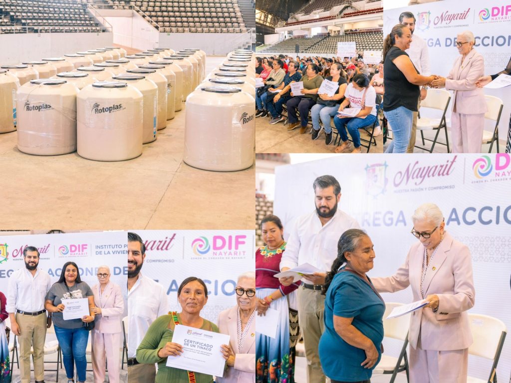 Con el propósito de mejorar las condiciones de vivienda y contribuir al bienestar integral de las familias, la presidenta del Sistema DIF Nayarit, doctora Beatriz Estrada Martínez, en coordinación con el Instituto Promotor de la Vivienda de Nayarit (IPROVINAY), encabezó la entrega de apoyos consistentes en tinacos y paquetes de láminas, destinados a fortalecer la infraestructura básica de los hogares beneficiados.