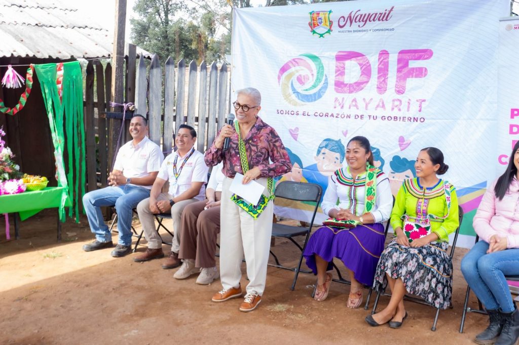 Con el compromiso de fortalecer la economía familiar y promover la riqueza cultural del arte nayarita, la doctora Beatriz Estrada Martínez, presidenta del Sistema DIF Nayarit, encabezó la entrega de Proyectos Productivos para Corte y Confección de Artesanías en las localidades de Rancho Viejo y Santa Gertrudis, en el municipio de Del Nayar. Estos apoyos —del Programa de Salud y Bienestar Comunitario (PBSC) —, beneficiaron a 112 familias de la etnia cora.