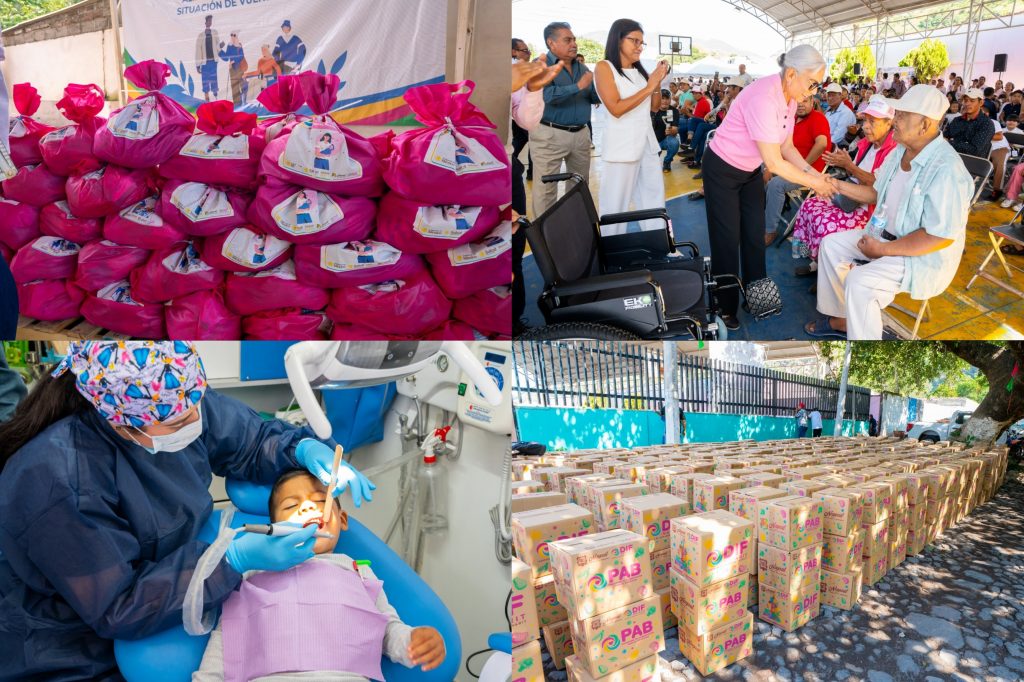 También se benefició con aparatos de movilidad asistida a personas con discapacidad. Además, la población accedió a consultas médicas generales, atención dental, entrega de medicamentos, lentes de lectura, graduados —monofocales y bifocales—, toma de signos vitales, valoraciones para la credencial de discapacidad y asesoría jurídica. Asimismo, se ofrecieron trámites gratuitos de actas de nacimiento, credenciales del INAPAM y certificados del INEA, junto con actividades recreativas para niñas, niños y personas adultas mayores.