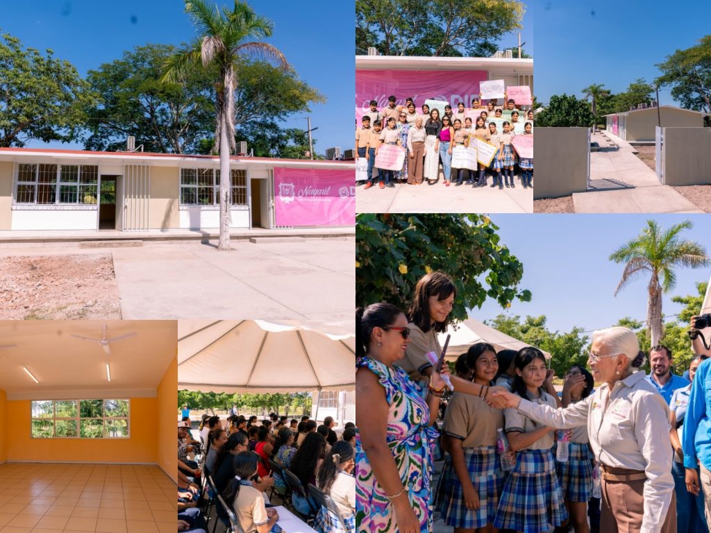 Hace unos meses, madres y padres de familia solicitaron a la presidenta del Sistema DIF Nayarit, doctora Beatriz Estrada Martínez, su intervención para dignificar la Telesecundaria Valeriano Sandoval Castañeda, en la localidad de Río Viejo, municipio de Tecuala. Hoy, con el respaldo de su esposo, el gobernador Miguel Ángel Navarro Quintero, esa petición se convirtió en realidad: se remodelaron tres aulas, la dirección, la bodega y se construyó el bardeado perimetral del plantel.