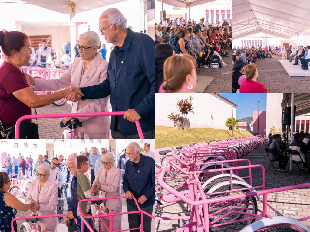 La presidenta del Sistema DIF Nayarit, doctora Beatriz Estrada Martínez, y su esposo, el gobernador del estado, Miguel Ángel Navarro Quintero, realizaron la entrega de triciclos de carga a 130 familias de 18 municipios de la entidad, una acción que fortalece el autoempleo y respalda el esfuerzo diario de quienes buscan generar ingresos propios y mejorar su calidad de vida.