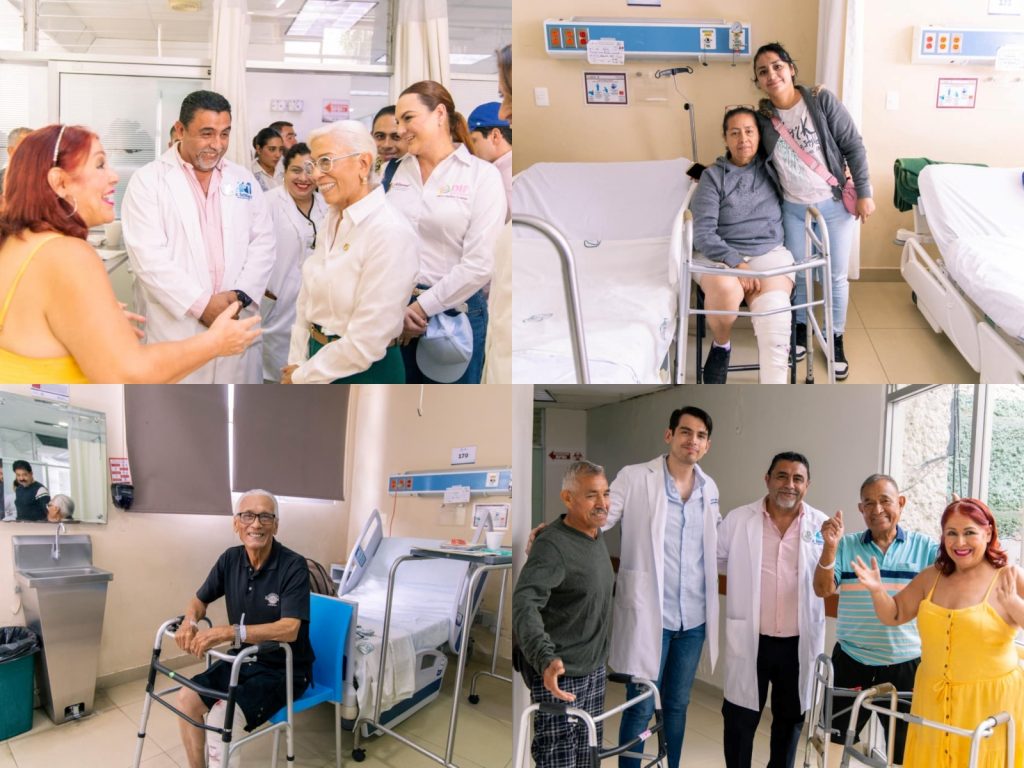 La presidenta del Sistema DIF Nayarit, doctora Beatriz Estrada Martínez, y su esposo, el gobernador del estado, Miguel Ángel Navarro Quintero, visitaron a las y los pacientes en recuperación que fueron beneficiados con la jornada de cirugías de rodilla y prótesis de cadera, en el Hospital IMSS-Bienestar de Tepic, para asegurar que los procedimientos y la recuperación sean exitosos, garantizando la pronta reincorporación a sus actividades cotidianas.