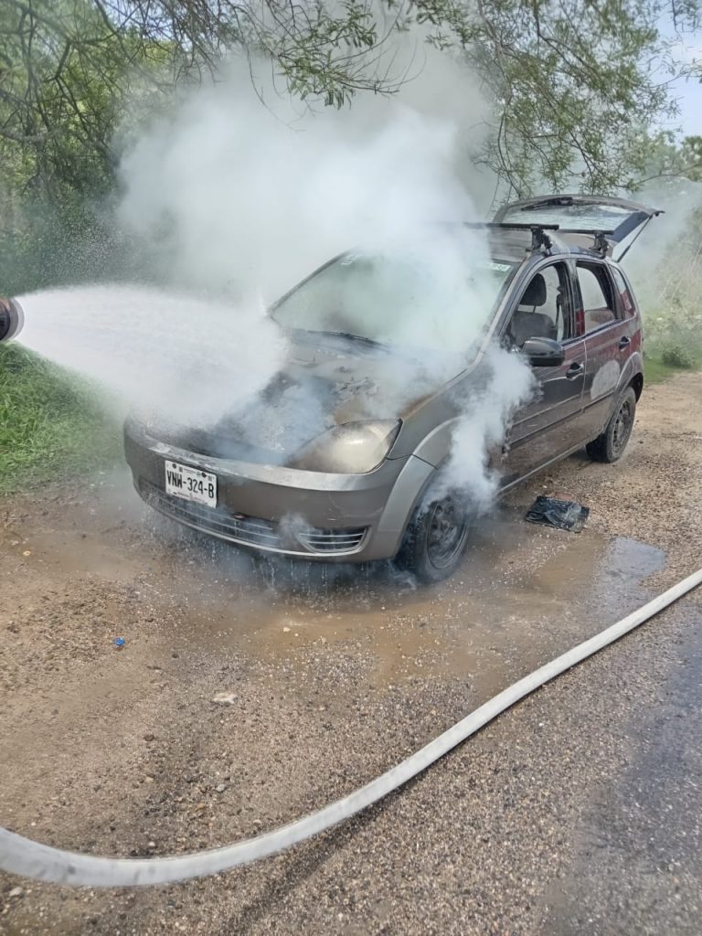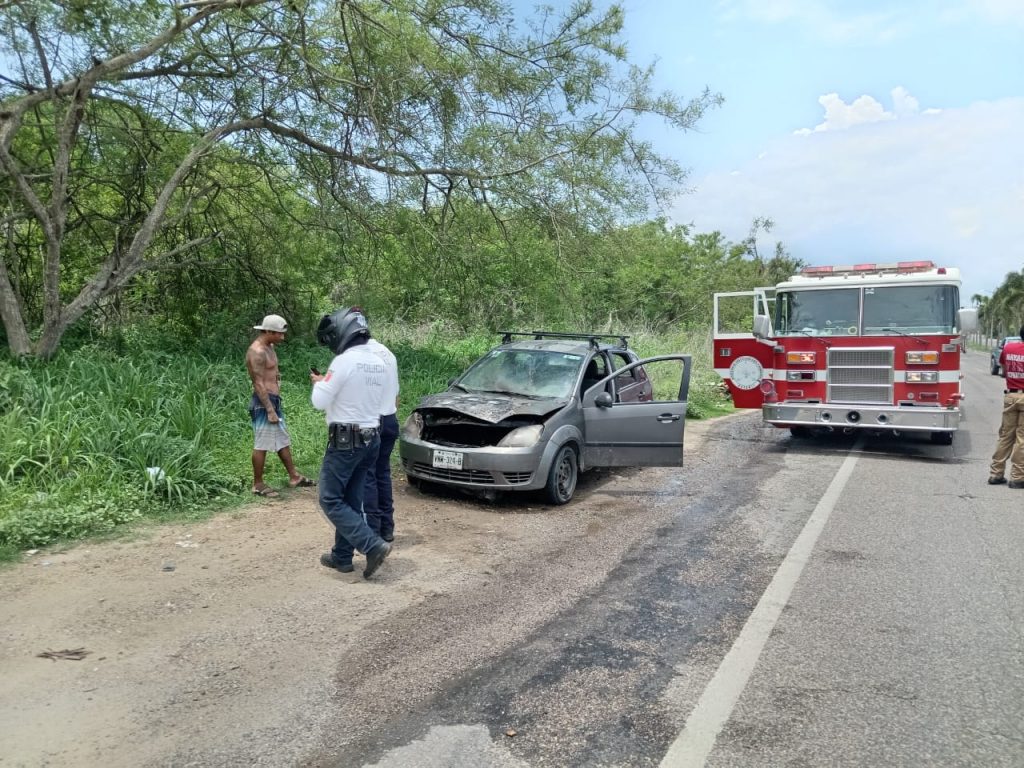 Durante recorridos realizados por los Bomberos de Nayarit en el municipio de Bahía de Banderas, se logra atender de manera oportuna el incendio de un vehículo.
