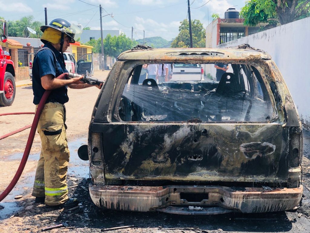 Ante un reporte recibido a la línea 9-1-1, donde se mencionara el incendio de un vehículo en la localidad de El Yago, del municipio de Santiago Ixcuintla.
