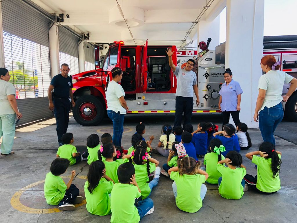 El Gobierno del Estado de Nayarit a través de la Dirección General de Protección Ciudadana y Bomberos doctrina a los infantes pertenecientes al jardín de niños “CENDI” en materia de Protección Civil.
