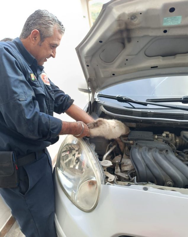 El reporte recibido a la línea 9-1-1, fue canalizado a los Bomberos de Nayarit, mismos que se dirigieron rápidamente al lugar señalado, dónde se encontrara un gato que tuviera un elástico amarrado a una pata trasera, lo que provocó que el gato se enredara en el motor de un vehículo particular en el que se resguardaba del frío.