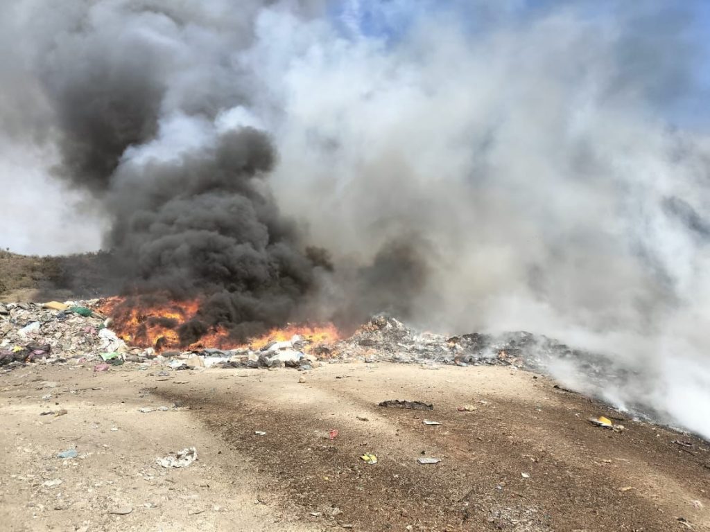 El Gobierno del Estado de Nayarit a través de la Dirección General de Protección Ciudadana y Bomberos, en conjunto con autoridades municipales continúan con las labores para sofocar el incendio del relleno sanitario del municipio de Acaponeta.