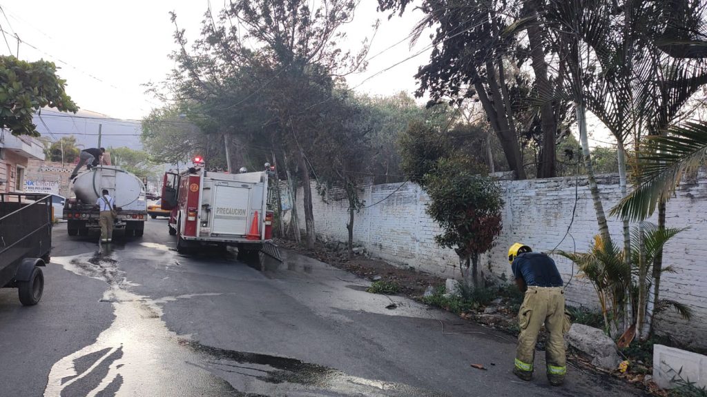 A la brevedad, los agentes canalizaron el reporte a los Bomberos de Nayarit, mismos que se dirigieron rápidamente a la esquina de la calle Perú donde se procedió a combatir el incendio.