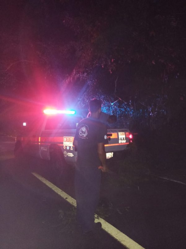 Al tomar conocimiento del hecho, el personal de Protección Ciudadana y Bomberos se dirige al punto indicado donde en un primer lugar de la carretera se encontraban dos ramas obstruyendo la vialidad, mismas que fueron retiradas con inmediatez.
