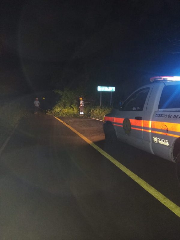 En atención a un reporte recibido a la línea de emergencias 9-1-1, donde se mencionara un árbol caído obstruyendo la vialidad a la altura del poblado de La Libertad, en el municipio de San Blas.