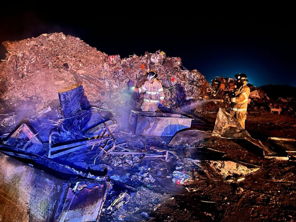 Al llamado de emergencia recibido a los números de emergencias donde se mencionara un incendio en una chatarrera, el personal de Bomberos del Estado acudió al lugar encontrando un cúmulo de chatarra en combustión.