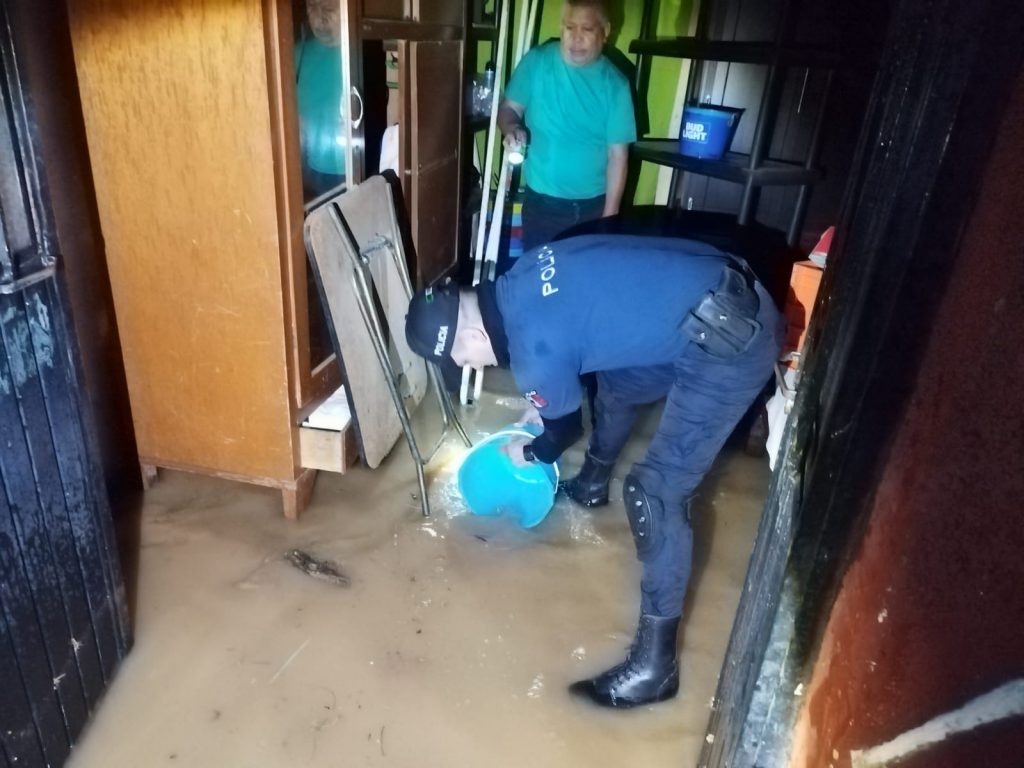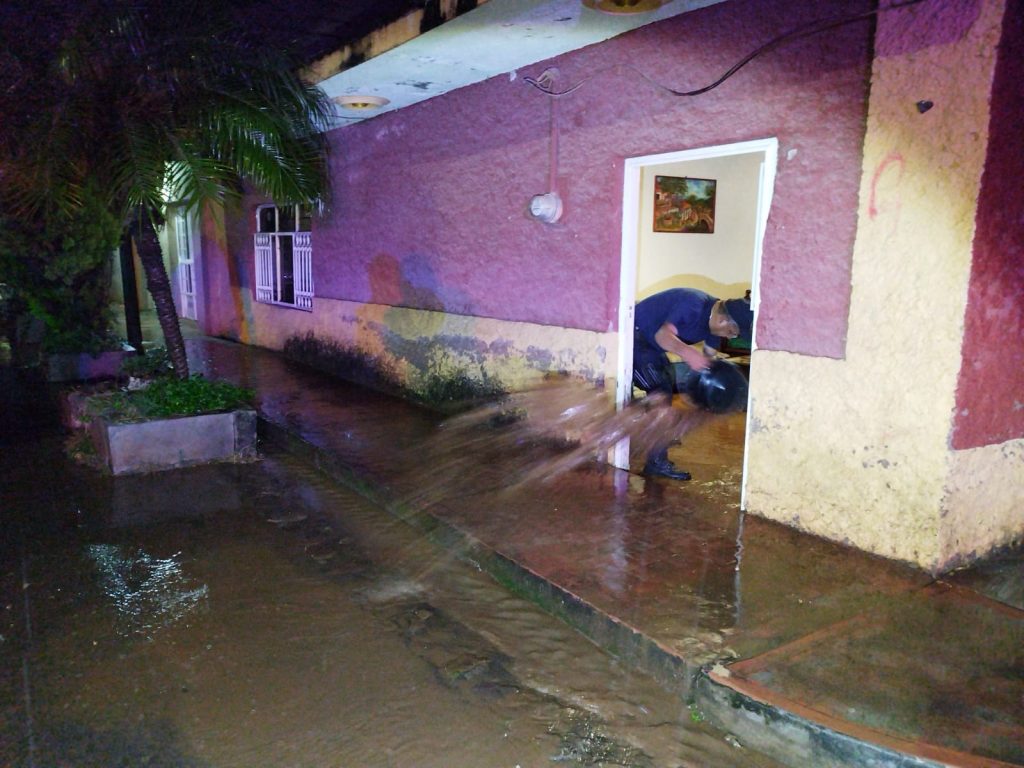 Los elementos de la Policía Estatal en coordinación con Policía Municipal procedieron a extraer el agua de las casas con el uso de cubetas, logrando eliminar el riesgo de presentaba.