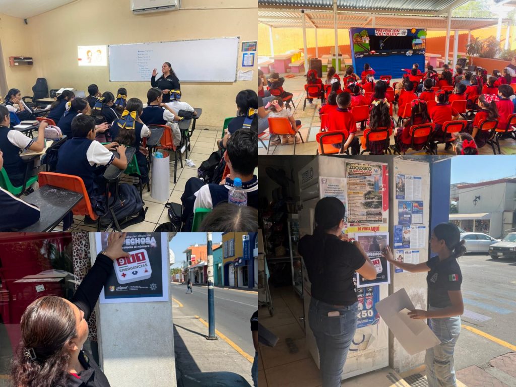 Como parte de la jornada, también se instalaron carteles informativos en planteles educativos y en la zona centro de Xalisco, con mensajes sobre la prevención del abuso infantil, la violencia familiar y el uso adecuado del 911, reforzando la cercanía institucional y el compromiso permanente de la Secretaría con la seguridad y el bienestar de la ciudadanía.