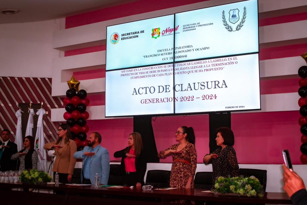 En el acto de clausura estuvieron presentes la Directora General de Ejecución de Medidas para Personas Adolescentes, Paula Muñoz Rosales, el Director General del DIF Nayarit, Mauro Lugo Izaguirre, la representante de la Secretaría de Educación de Nayarit, Azucena Moncada Guzmán, la representante Estatal de la Coordinación Nacional de Becas para el Bienestar Benito Juárez, Brenda Berenice Díaz Salazar, y la Directora General del INEA, Paola Alejandra Álvarez Montero.