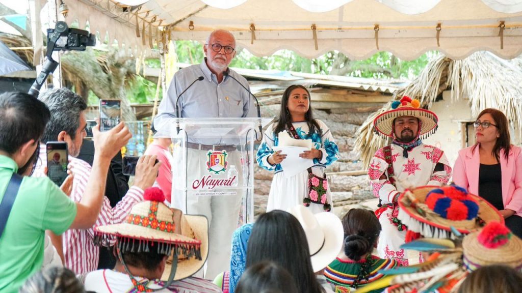 El mandatario nayarita fue acompañado por la secretaria general de Gobierno, Rocío Esther González García y las presidentas del Congreso del Estado, Alba Cristal Espinoza Peña y del Poder Judicial, Norma Alicia Haro Cruz respectivamente, además de gobernadores tradicionales e integrantes de los pueblos originarios.
