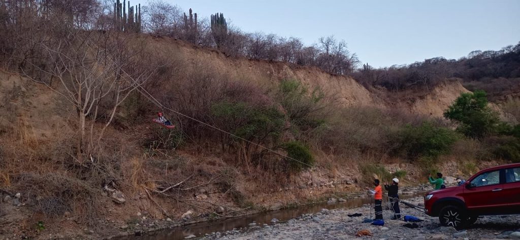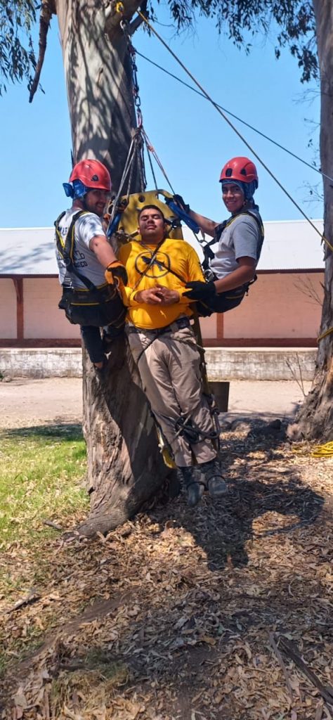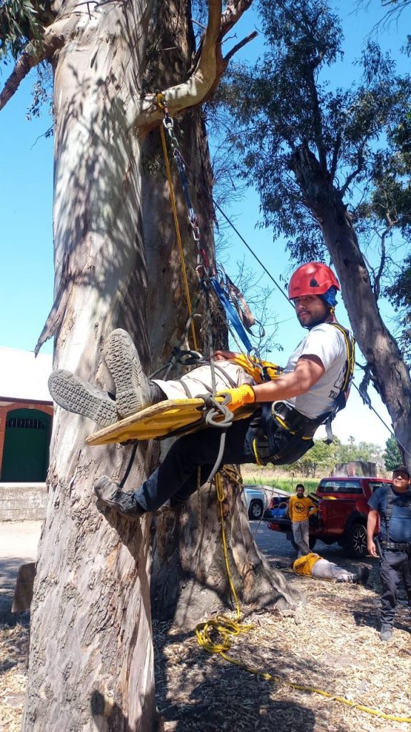 Dentro de los ejercicios prácticos, se enseñó a los elementos a realizar la maniobra conocida como “polipasto guiado” para cruce de ríos o barrancos, misma que consiste en trasladar en una camilla rígida al paciente sobre un río o barranco.