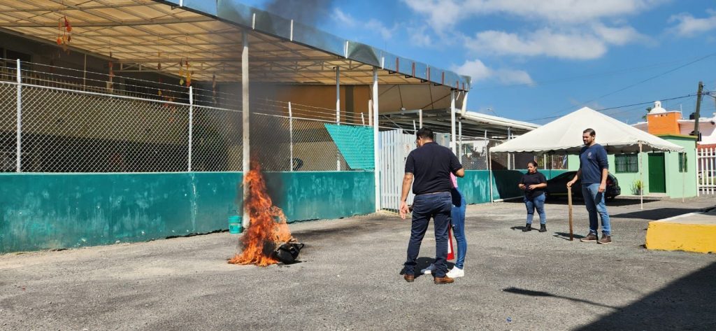 Finalmente, se acudió al teatro del pueblo “Ali – Chumacero” y al “CENDI No. 2” ambos ubicados en Tepic, donde se brindó a cada dependencia el tema de “uso y manejo de extintores”, en el cual se les enseñó a las y los trabajadores a cargar el extintor de manera correcta, identificar para qué sirve cada uno de los tipos de agentes extintores, los tipos de fuego y realizar el disparo del agente extintor desde la distancia reglamentaria.