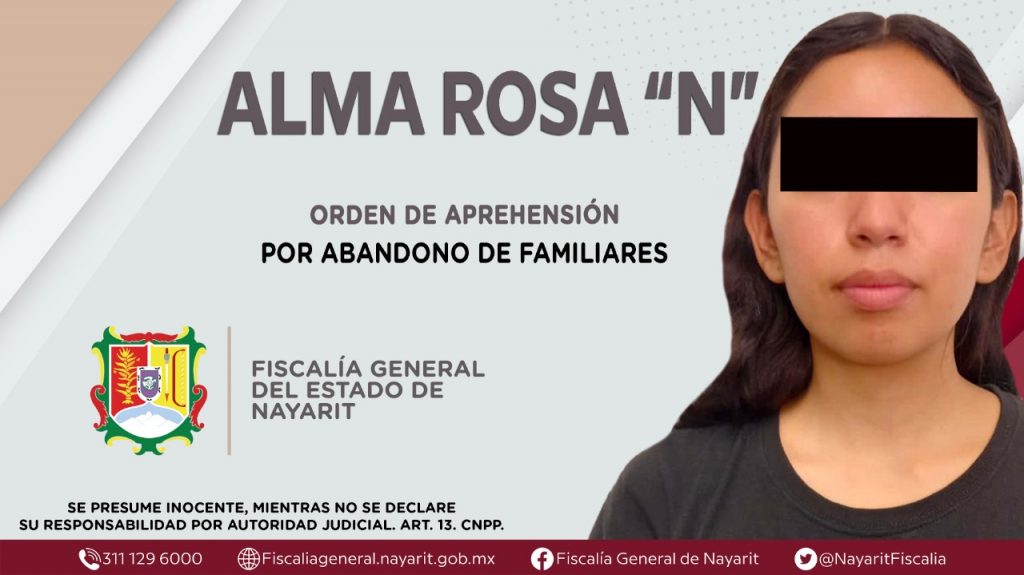 Elementos de la Agencia de Investigación Criminal de Nayarit ejecutaron una orden de aprehensión en la ciudad de Tepic contra Alma Rosa “N”, por su presuntiva responsabilidad penal en hechos que la ley califica como delito de abandono de familiares, cometido en agravio de dos menores de edad de identidades reservadas.