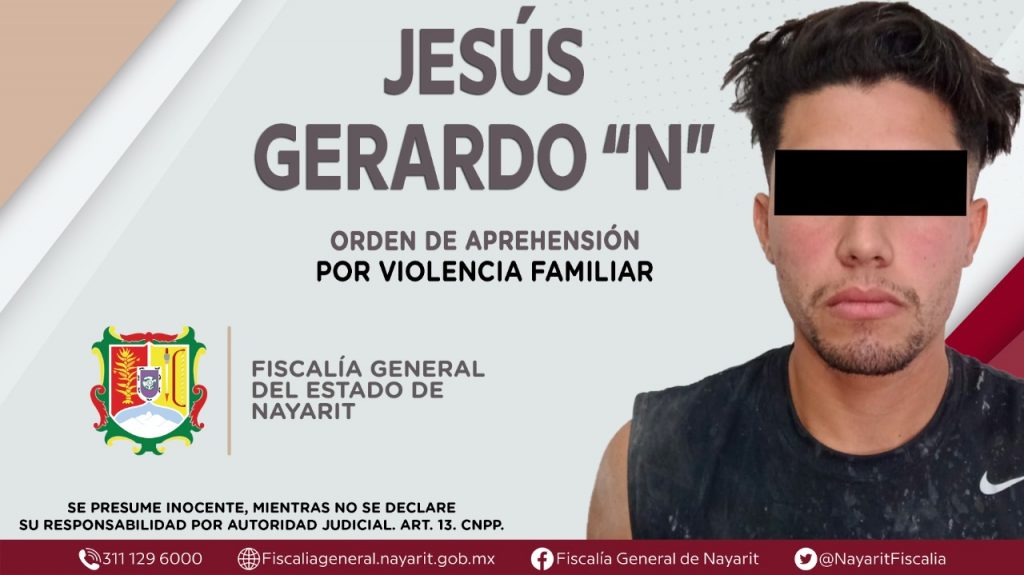 En la ciudad de Tepic, elementos de la Agencia de Investigación Criminal ejecutaron una orden de aprehensión contra Jesús Gerardo “N”, originario y vecino de la capital nayarita, por su presuntiva responsabilidad penal en hechos que la ley califica como delito de violencia familiar, cometido en agravio de una persona de sexo femenino de identidad reservada.