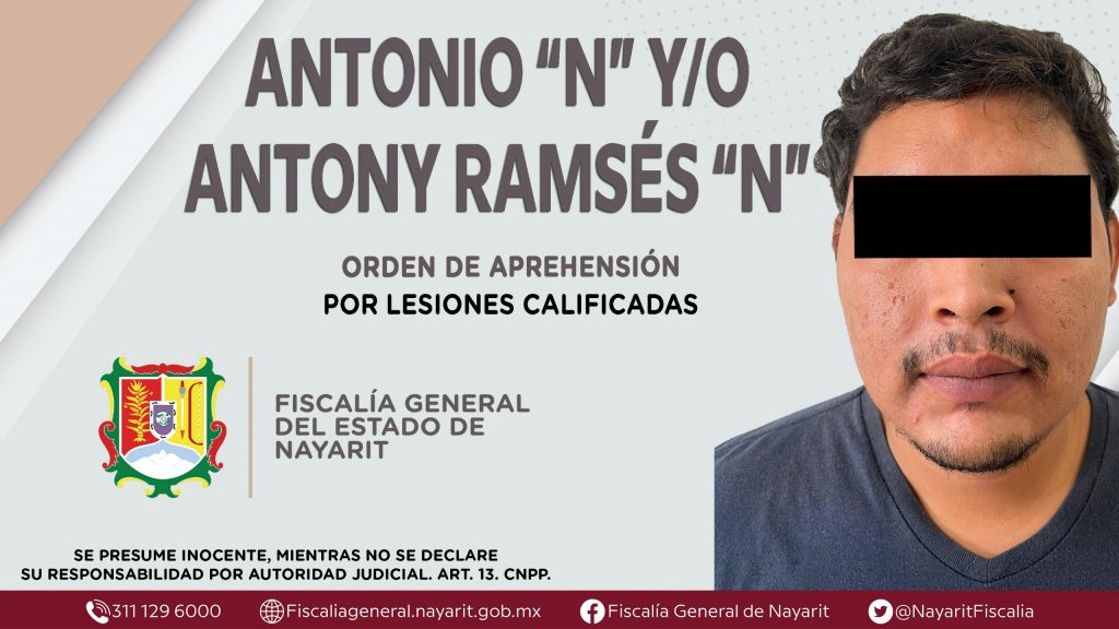 Elementos de la Agencia de Investigación Criminal de Nayarit ejecutaron una orden de aprehensión en la capital nayarita contra Antonio “N” y/o Antony Ramsés “N”, por su presunta participación en hechos que según apreciación de la ley encuadran el delito de lesiones calificadas.