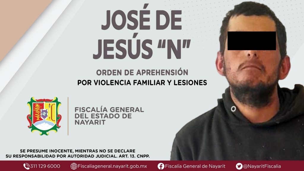 La Fiscalía General del Estado a través de la Agencia de Investigación Criminal en coordinación con la Policía Municipal de Ahuacatlán cumplimentó una orden de aprehensión contra José de Jesús “N”, por su presunta participación en hechos que según apreciación de la ley encuadran los delitos de violencia familiar y lesiones, cometidos en contra de una mujer de identidad reservada.