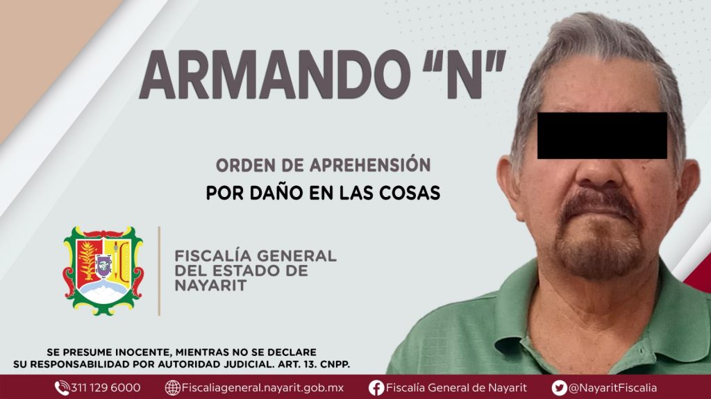 Elementos de la Agencia de Investigación Criminal de Nayarit ejecutaron una orden de aprehensión en el municipio de Bahía de Banderas contra Armando “N”, por su presunta participación en hechos que según apreciación de la ley encuadran el delito de daño en las cosas, ilícito cometido en agravio de una persona de sexo masculino de identidad reservada.