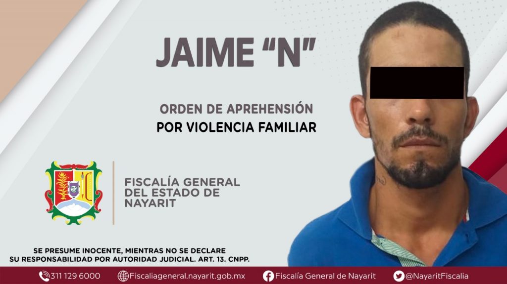 Elementos de la Agencia de Investigación Criminal cumplimentaron una orden de aprehensión en el municipio de Bahía de Banderas contra Jaime “N”, por su presunta participación en hechos que la ley juzga como delito de violencia familiar, cometido en agravio de una persona de sexo femenino cuya identidad se reserva.