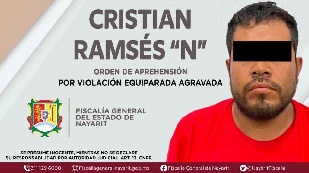 En el interior del municipio de Jala, la Fiscalía General del Estado a través de la Agencia de Investigación Criminal dio cumplimiento a una orden de aprehensión contra Cristian Ramsés “N”, por su presunta participación en hechos que según valoración de la ley configuran el delito de violación equiparada agravada, en agravio de una persona menor de dieciocho años de identidad reservada.