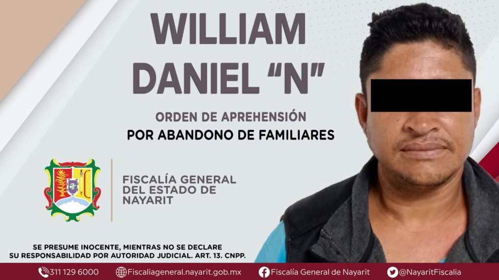 Elementos de la Agencia de Investigación Criminal de Nayarit ejecutaron una orden de aprehensión en la ciudad de Tepic contra William Daniel “N”, por su presunta participación en hechos que según apreciación de la ley encuadran el delito de abandono de familiares, cometido en agravio de una persona menor de dieciocho años de identidad reservada.