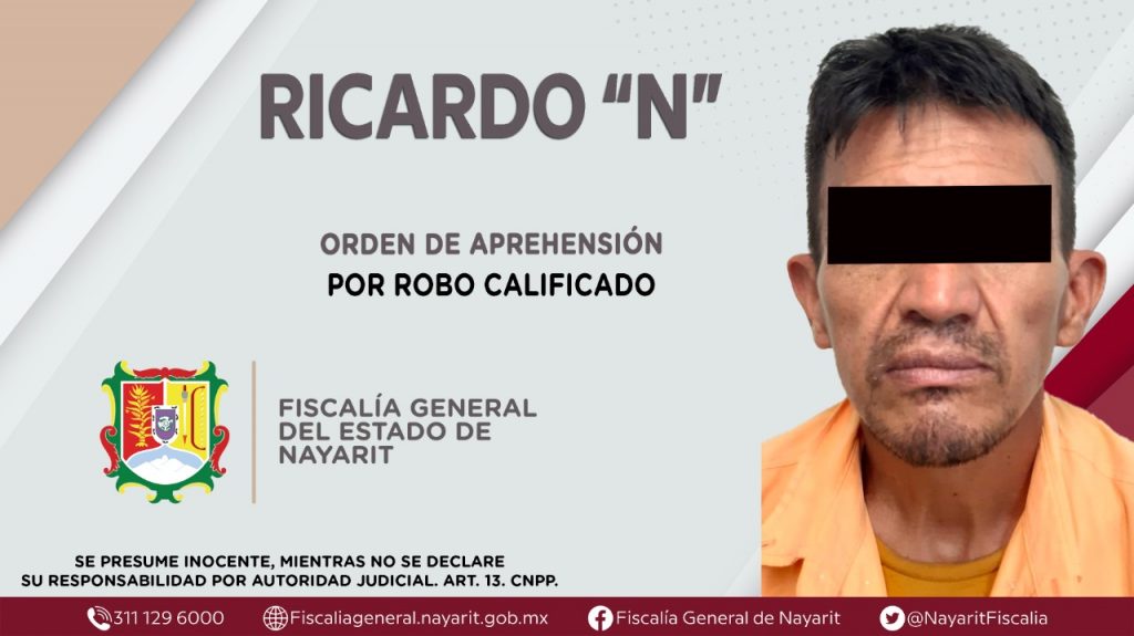 La Fiscalía General de Nayarit a través de la Agencia de Investigación Criminal ejecutó una orden de aprehensión en la capital nayarita contra Ricardo “N”, por su presunta participación en hechos que según apreciación de la ley encuadran el delito de robo calificado, cometido en agravio de tienda Walmart.