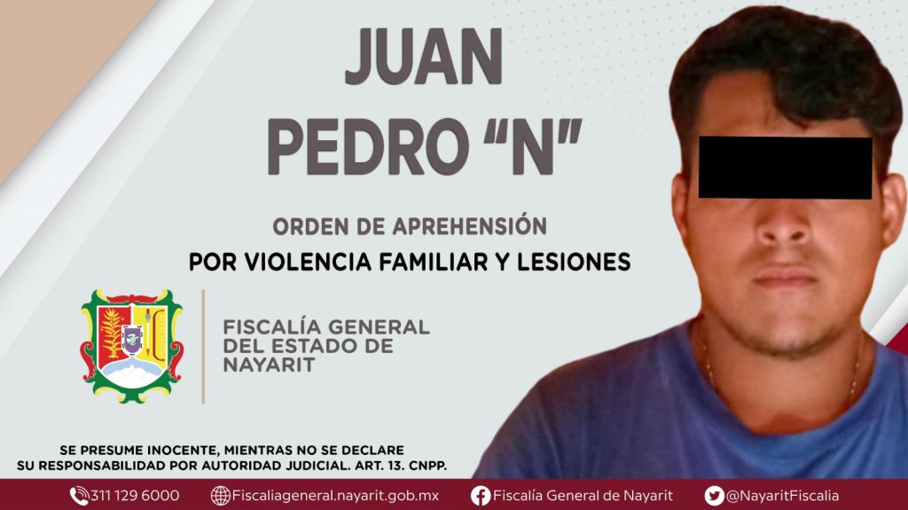 La Fiscalía General del Estado a través de la Agencia de Investigación Criminal dio cumplimiento a una orden de aprehensión en la localidad Las Varas, municipio de Compostela contra Juan Pedro “N”, por su presunta participación en hechos que según apreciación de la ley encuadran los delitos de violencia familiar y lesiones, cometidos en agravio de una mujer de identidad reservada. El imputado fue puesto a disposición del Juez de Control de Primera Instancia del Sistema Acusatorio y Oral, con sede en la localidad Bucerías, municipio de Bahía de Banderas, para dar continuidad a los trámites legales que establecerán su situación jurídica.