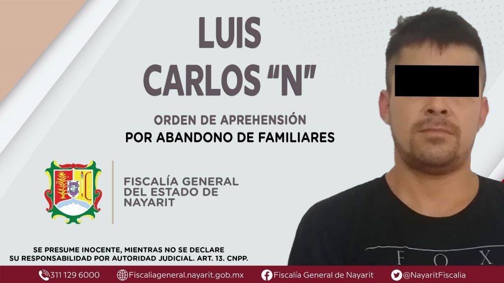 La Fiscalía General del Estado a través de la Agencia de Investigación Criminal dio cumplimiento a una orden de aprehensión en la localidad Los Arrayanes, municipio de Rosamorada contra Luis Carlos “N”, por su presunta participación en hechos que según apreciación de la ley configuran el delito de abandono de familiares, cometido en agravio de dos niños de identidades reservadas.