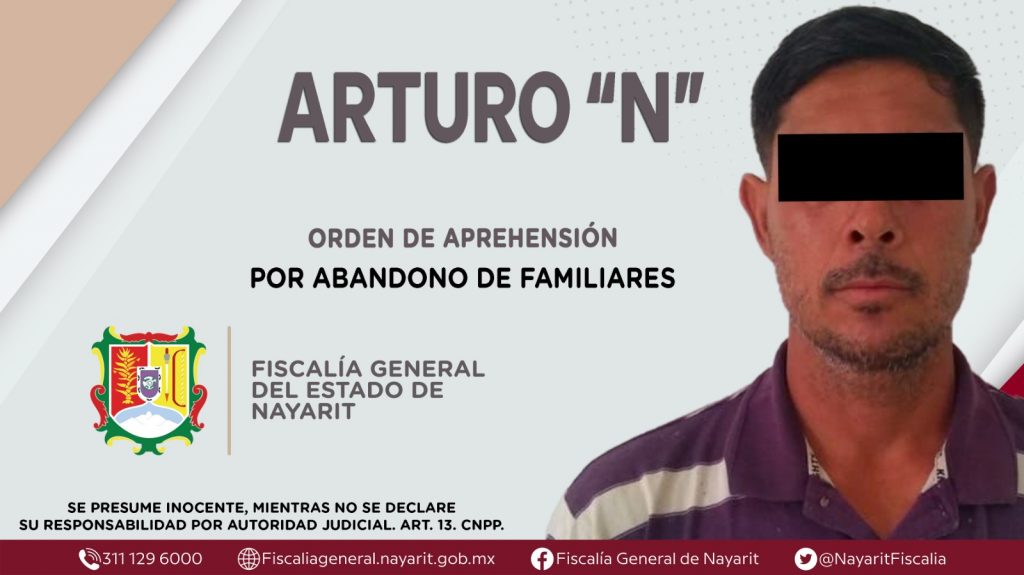 La Fiscalía General del Estado a través de la Agencia de Investigación Criminal dio cumplimiento a dos órdenes de aprehensión en el municipio de Ruiz contra Arturo “N”, por su presunta participación en hechos que según apreciación de la ley configuran el delito de abandono de familiares, cometido contra dos niños de identidades reservadas.