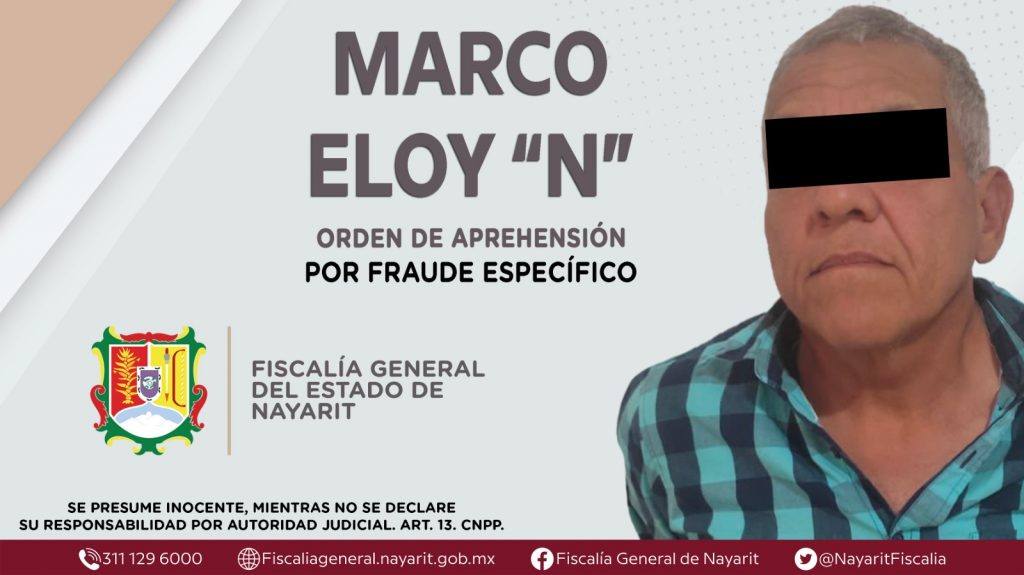 Elementos de la Agencia de Investigación Criminal de Nayarit ejecutaron una orden de aprehensión en el poblado Gavilán Grande, municipio de Santiago Ixcuintla contra Marco Eloy “N”, por su presunta participación en hechos que según apreciación de la ley configuran el delito de fraude específico, cometido en agravio de una persona de sexo masculino de identidad reservada.