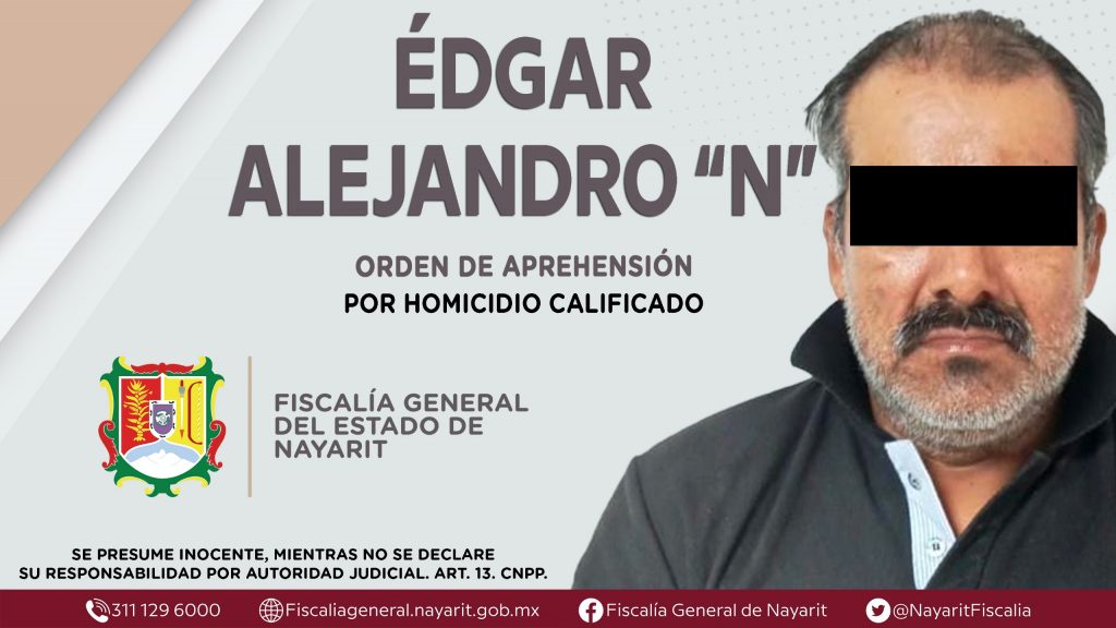 Elementos de la Agencia de Investigación Criminal de Nayarit ejecutaron una orden de aprehensión en la localidad Villa Hidalgo, municipio de Santiago Ixcuintla contra Édgar Alejandro “N”, por su presunta participación en hechos que según apreciación de la ley encuadran el delito de homicidio calificado, cometido en agravio de una persona de sexo masculino de identidad reservada.