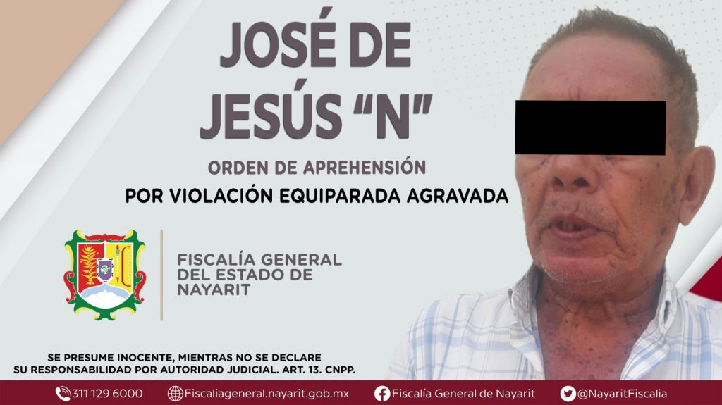 Elementos de la Agencia de Investigación Criminal de Nayarit ejecutaron una orden de aprehensión en la localidad Vado del Cora, municipio de Santiago Ixcuintla contra José de Jesús “N”, por su presunta participación en hechos que según apreciación de la ley encuadran el delito de violación equiparada agravada, en contra de una adolescente de identidad reservada.
