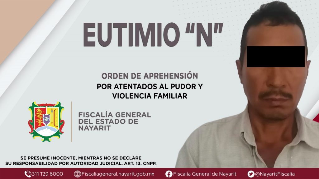 La Fiscalía General del Estado a través de la Agencia de Investigación Criminal cumplimentó una orden de aprehensión en el municipio de Rosamorada contra Eutimio “N”, por su presunta participación en hechos que bajo apreciación de la ley configuran los delitos de atentados al pudor y violencia familiar equiparada, cometidos contra una niña de identidad reservada.