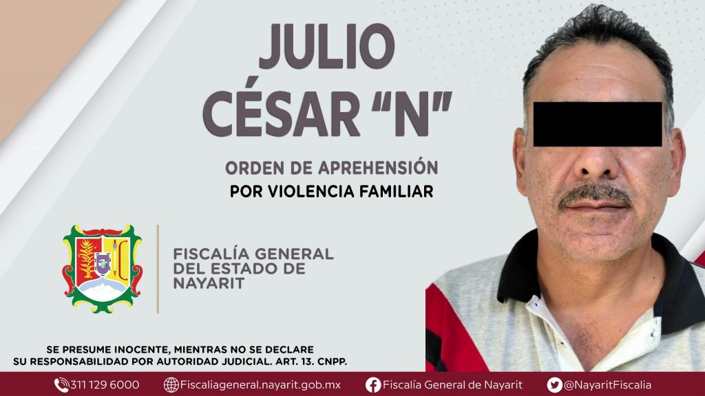 La Fiscalía General de Nayarit a través de la Agencia de Investigación Criminal dio cumplimiento a una orden de aprehensión en la capital nayarita contra Julio César “N”, por su presunta participación en hechos que según apreciación de la ley encuadran el delito de violencia familiar, cometido en agravio de una mujer cuya identidad se reserva.