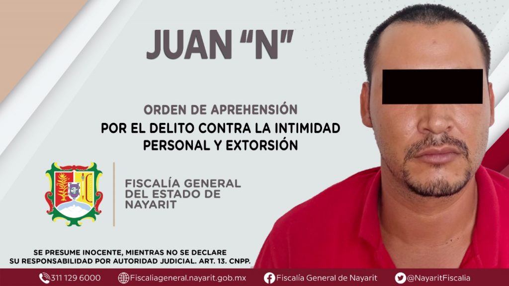 Elementos de la Agencia de Investigación Criminal cumplimentaron una orden de aprehensión en la ciudad de Tepic contra Juan “N”, por su presunta participación en hechos que la ley juzga como delitos contra la intimidad personal y extorsión, cometidos en agravio de una persona de sexo femenino cuya identidad se reserva.