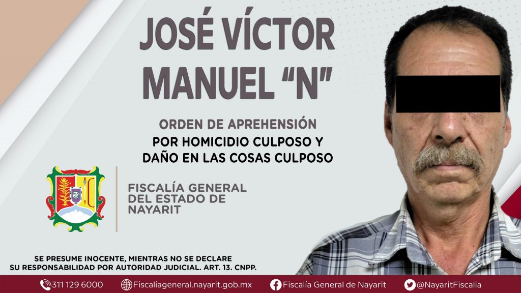 La Fiscalía General del Estado a través de la Agencia de Investigación Criminal dio cumplimiento a una orden de reaprehensión en la ciudad de Tepic contra José Víctor Manuel “N”, por su presunta participación en hechos que según apreciación de la ley configuran los delitos de homicidio culposo y daño en las cosas culposo, cometidos en agravio de una persona de sexo masculino de identidad reservada.