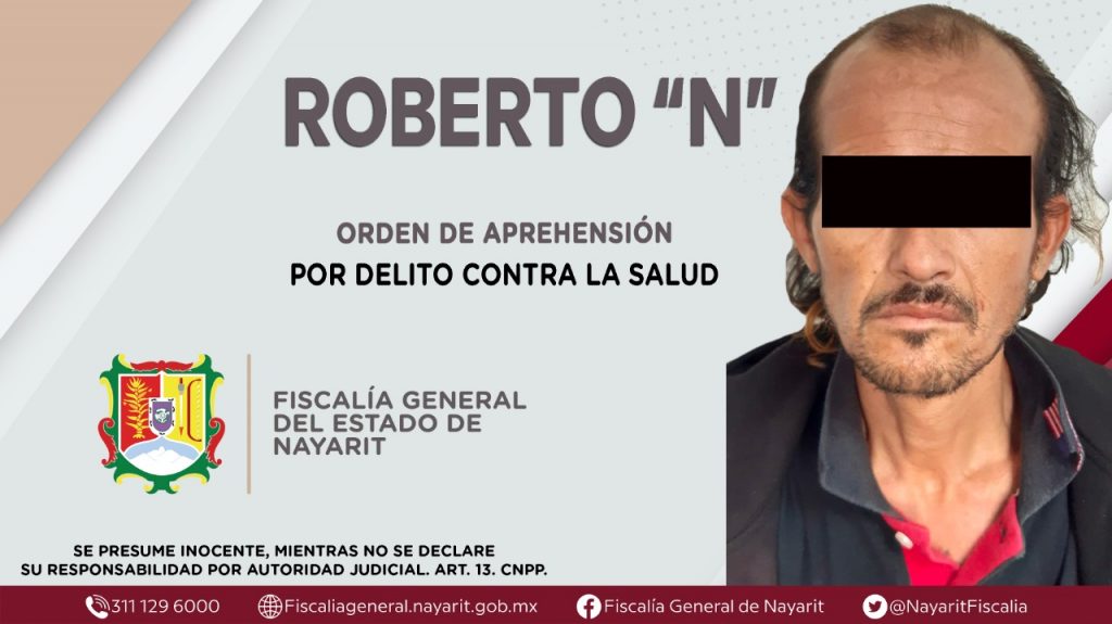 La Fiscalía General de Nayarit a través de la Agencia de Investigación Criminal ejecutó una orden de aprehensión contra Roberto “N”, por su presunta participación en hechos que según apreciación de la ley encuadran el delito contra la salud en su modalidad de narcomenudeo -en su hipótesis de posesión de psicotrópicos (metanfetaminas)-, cometido en agravio de la sociedad.