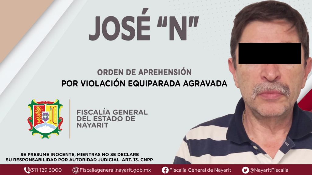 La Fiscalía General de Nayarit a través de la Agencia de Investigación Criminal dio cumplimiento a una orden de aprehensión en la ciudad de Tepic contra José “N”, por su presunta participación en hechos que según apreciación de la ley encuadran el delito de violación equiparada agravada, cometido en agravio de una persona de sexo femenino de identidad reservada.