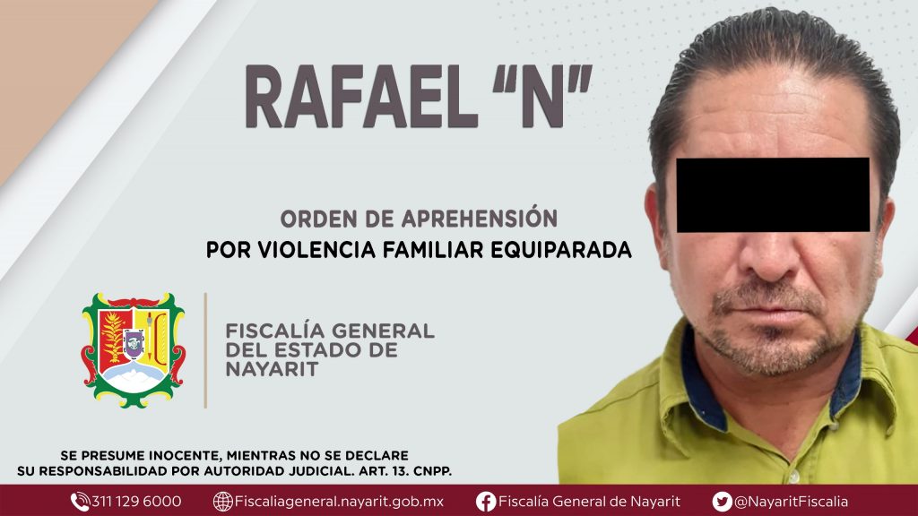 La Fiscalía General del Estado a través de la Agencia de Investigación Criminal dio cumplimiento a una orden de aprehensión en la capital nayarita contra Rafael “N”, por su presunta participación en hechos que según apreciación de la ley configuran el delito de violencia familiar equiparada, cometido en agravio de una persona de sexo femenino de identidad reservada.