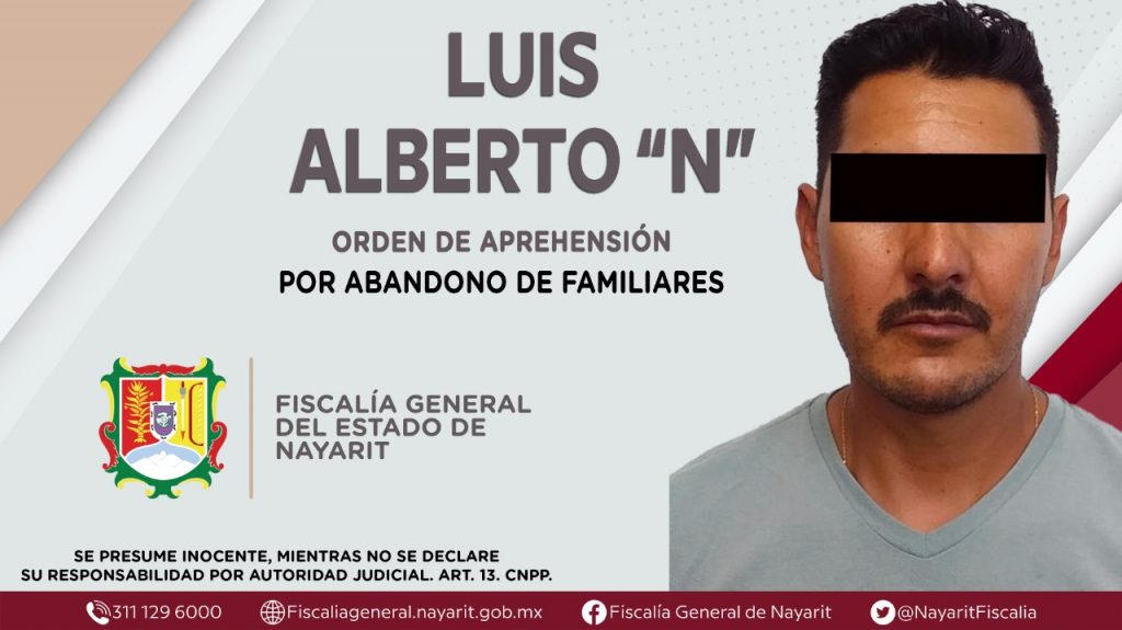 Elementos de la Agencia de Investigación Criminal cumplimentaron una orden de aprehensión en la ciudad de Tepic contra Luis Alberto “N”, por su presunta participación en hechos que según apreciación de la ley configuran el delito de abandono de familiares, cometido en agravio de dos menores de edad, siendo reservadas las identidades de las víctimas.