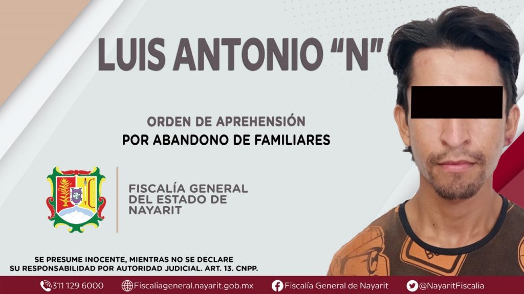 En la ciudad de Tepic, la Fiscalía General de Nayarit a través de la Agencia de Investigación Criminal ejecutó una orden de aprehensión contra Luis Antonio “N”, quien es originario y vecino de la capital nayarita, por su presunta participación en hechos que según apreciación de la ley encuadran el delito de abandono de familiares, cometido en agravio de una menor de edad de identidad reservada.