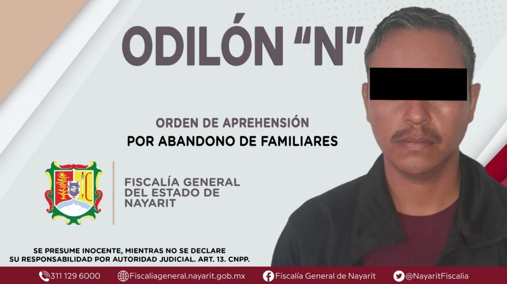 Elementos de la Agencia de Investigación Criminal de Nayarit ejecutaron una orden de aprehensión en el municipio de Ruiz contra Odilón “N”, por su presuntiva participación en hechos que según apreciación de la ley encuadran el delito de abandono de familiares, cometido contra una persona menor de dieciocho años de identidad reservada.