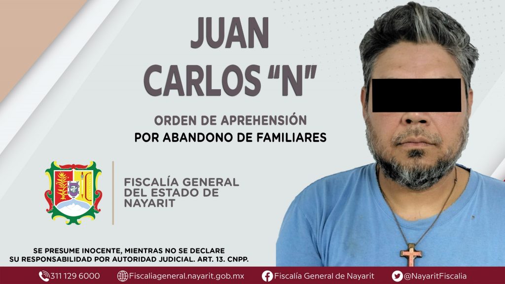 La Fiscalía General del Estado a través de la Agencia de Investigación Criminal dio cumplimiento a una orden de aprehensión en la ciudad de Tepic contra Juan Carlos “N”, por su presunta participación en hechos que según apreciación de la ley configuran el delito de abandono de familiares, cometido en contra de un niño de identidad reservada.